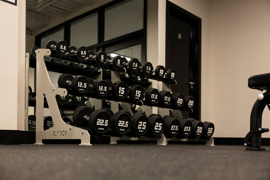 Designed for use with BLK BOX Urethane Dumbbells, it offers a range of colour options to suit any gym aesthetic. Sloped shelves ensure safe, ergonomic access when lifting or re-racking, while rubber-coated saddles and a central rail divider keep dumbbells securely in place. The result is a stable, safe, and efficient storage solution for gyms that demand performance.
