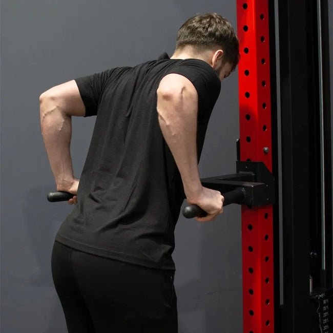 Our dip stations are great for bodyweight training, the dip station attachment allows you to perform bodyweight exercises such as; bent knee raises, side raises, hanging rows and more, helping develop your back and triceps muscles. Our utility pegs help store your weight plates and keep them within an arm’s reach of your rack. Great for keeping your bumper plates elevated and helps avoid clutter.