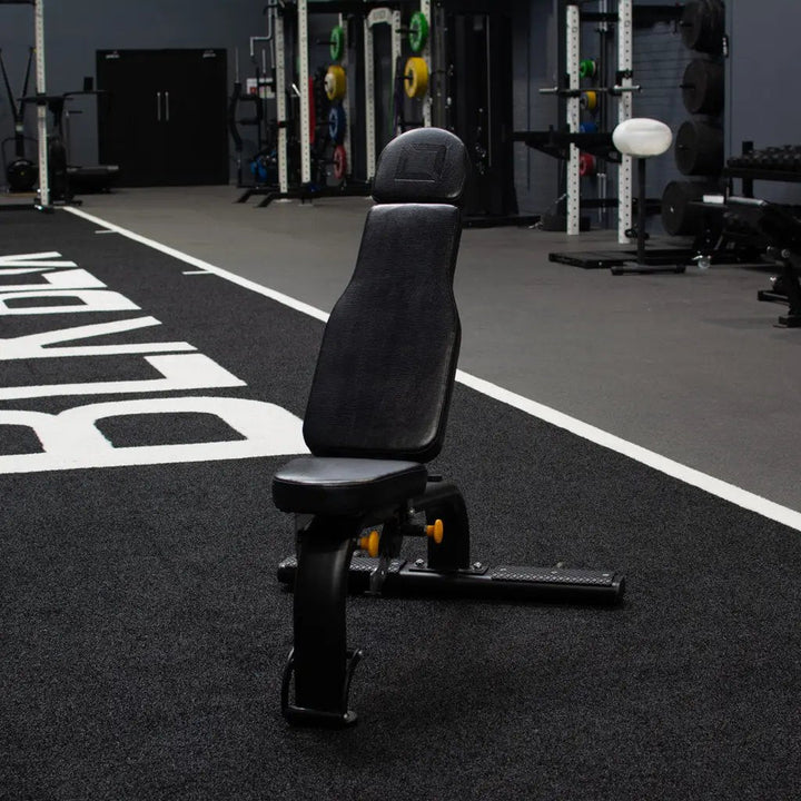 The BLK BOX Utility Adjustable Bench features 10 backrest angles and 5 seat positions, making it a versatile tool for a variety of weight training exercises. Equipped with wheels, it is easy to move and reposition, whether used with dumbbells or paired with a power rack.