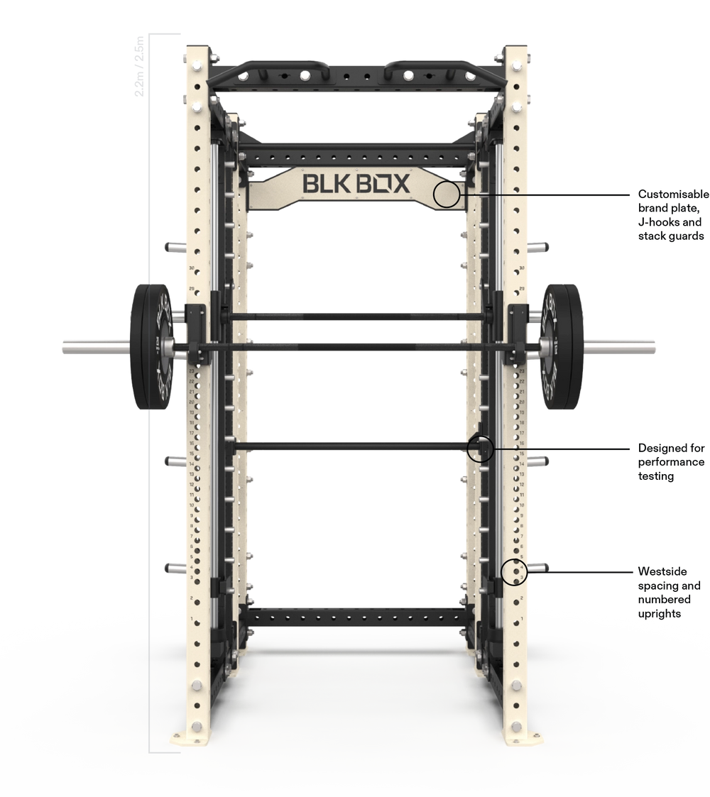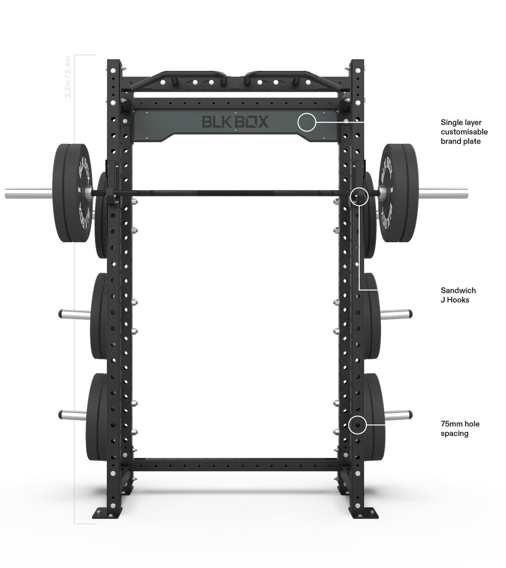 Designed in Belfast, this off-the-shelf series has a rapid lead time and is easy to install, all made with the BLK BOX quality we’re renowned for. The 1 Series is made from 60x60x3mm steel, laser-cut, and finished with a black powder coat. Rigs and power racks are available in 2.2m or 2.4m tall, feature a notch system for hole separation, and come with sandwich J-Hooks as standard.