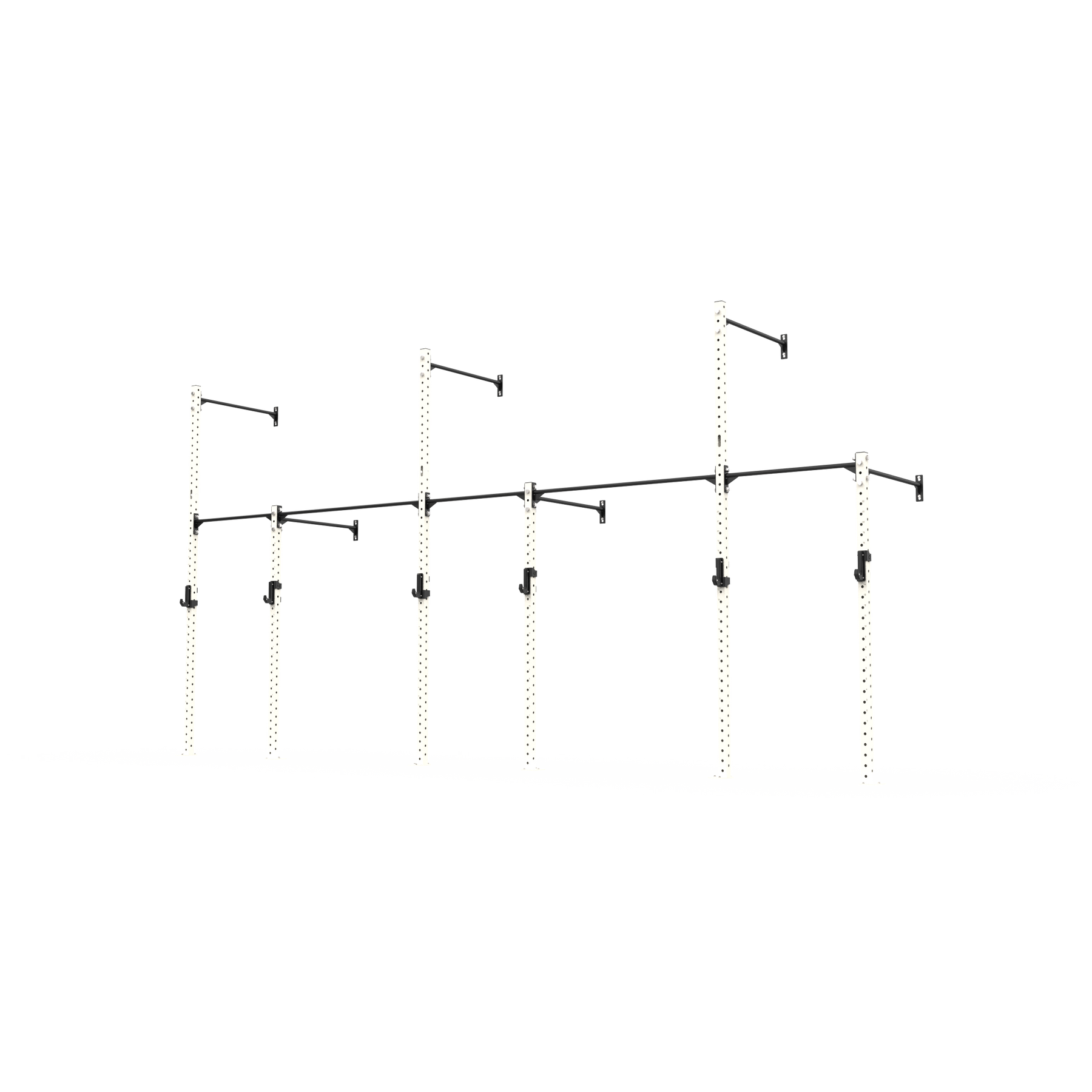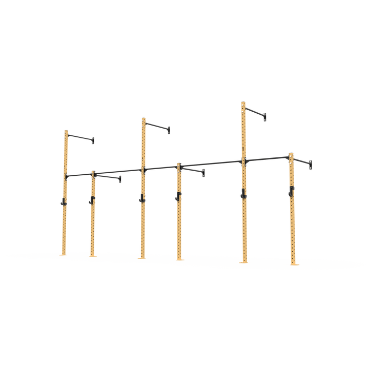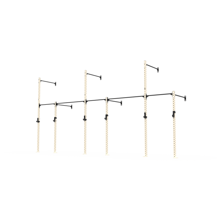 The rig also allows for gymnastic ring and climbing rope attachments, adding more variety to your setup. Constructed from 70x70x3mm steel with 4-way numbered hole spacing and finished in our signature powder coat, it delivers strength, durability, and versatility in a compact footprint. Ideal for PT studios, small group training, and facilities looking to maximise wall space without compromise. Fully expandable and compatible with 3 Series attachments, this rig is ready to grow with your training.