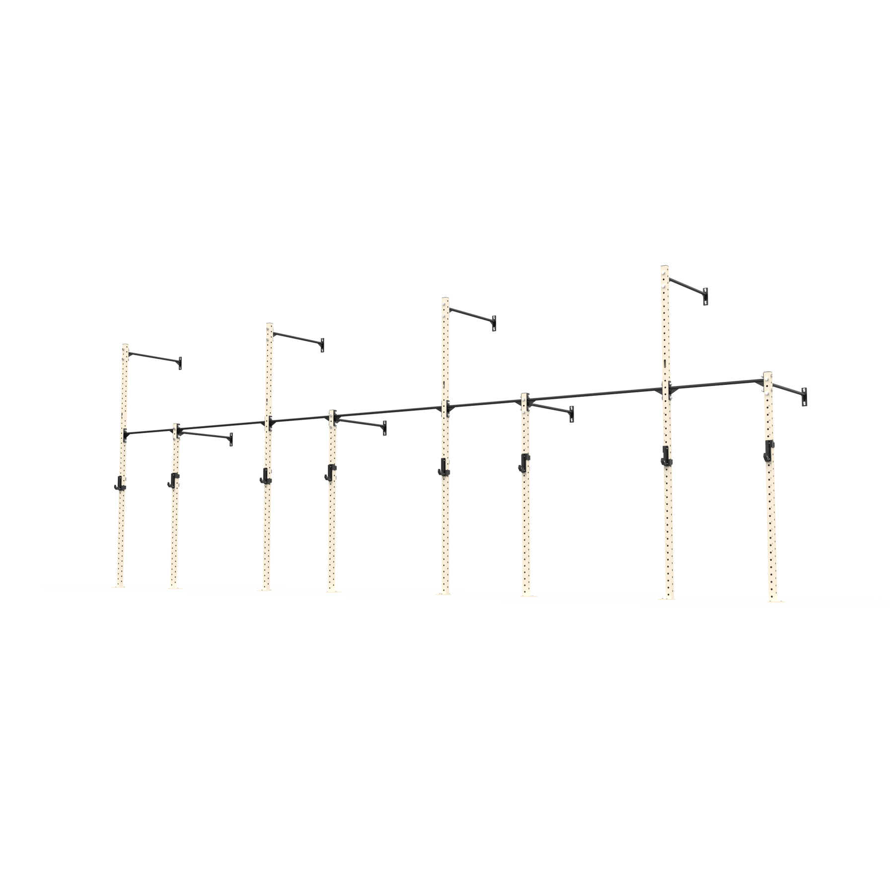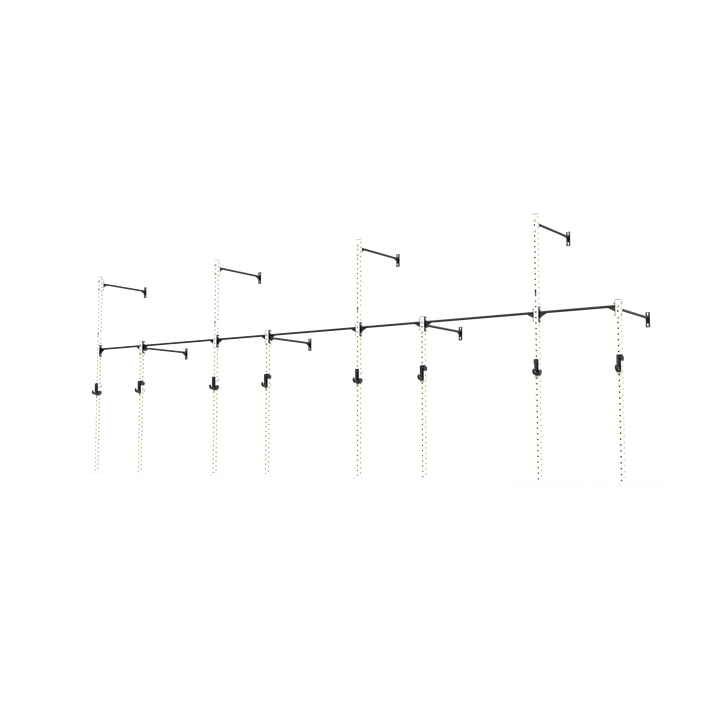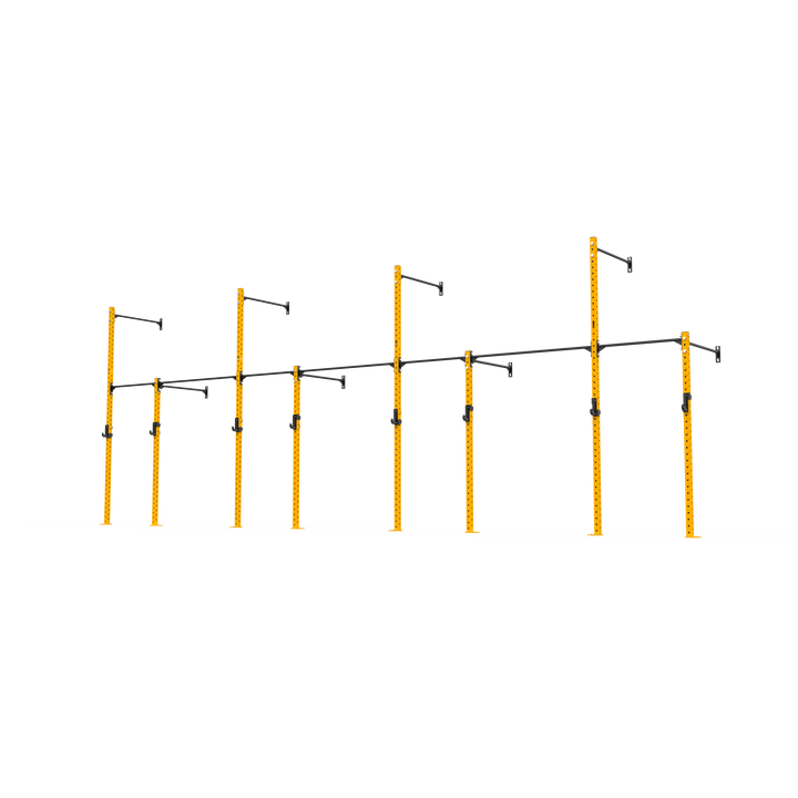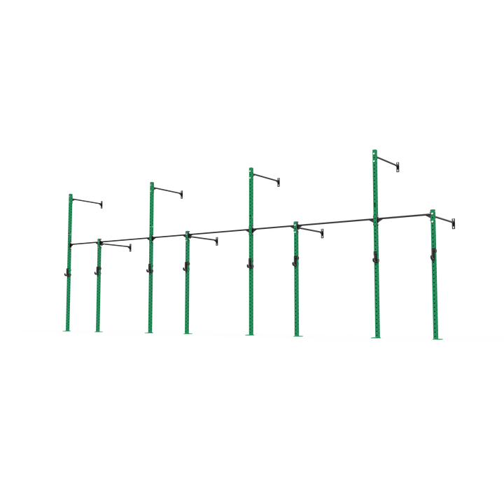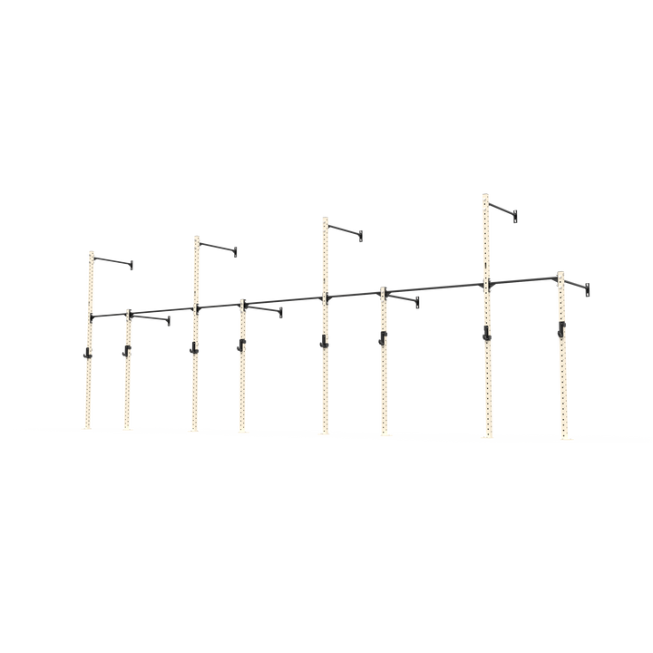 The rig also allows for gymnastic ring and climbing rope attachments, adding more variety to your setup. Constructed from 70x70x3mm steel with 4-way numbered hole spacing and finished in our signature powder coat, it delivers strength, durability, and versatility in a compact footprint. Ideal for PT studios, small group training, and facilities looking to maximise wall space without compromise. Fully expandable and compatible with 3 Series attachments, this rig is ready to grow with your training.