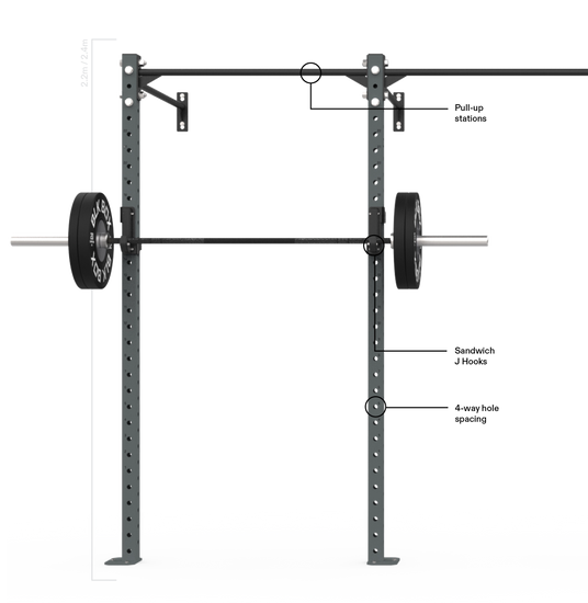 The 3 Series Wall Mounted Rig is a scalable, space-efficient solution for functional and strength training. Designed with 70x70x3mm steel uprights and 4-way numbered hole spacing, it supports squat stations, pull-ups, and attachments with ease. Ideal for facilities looking to maximise floor space without compromising on performance.
