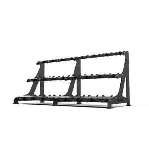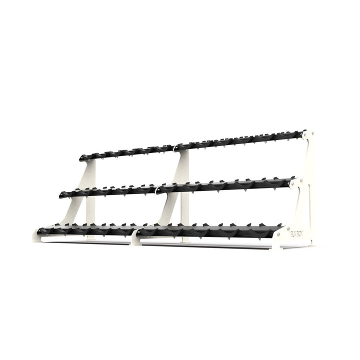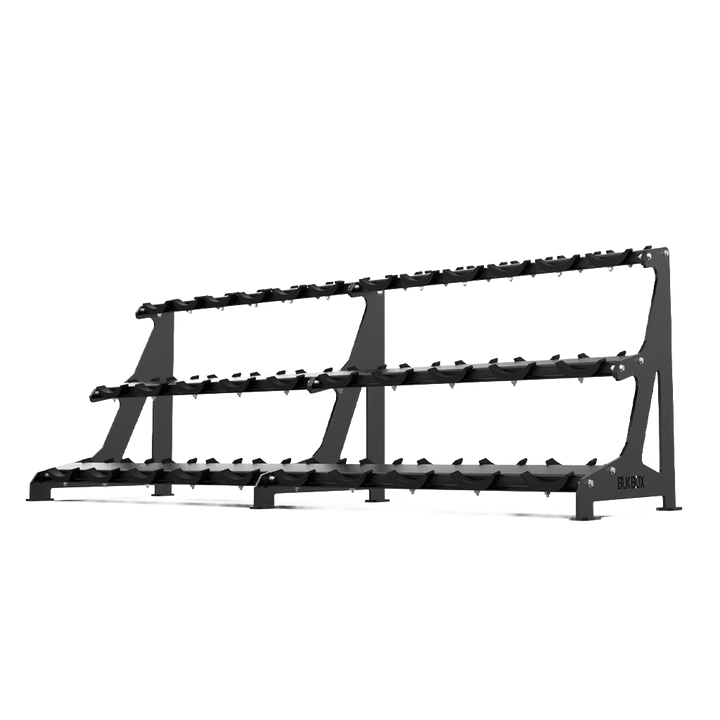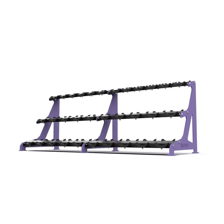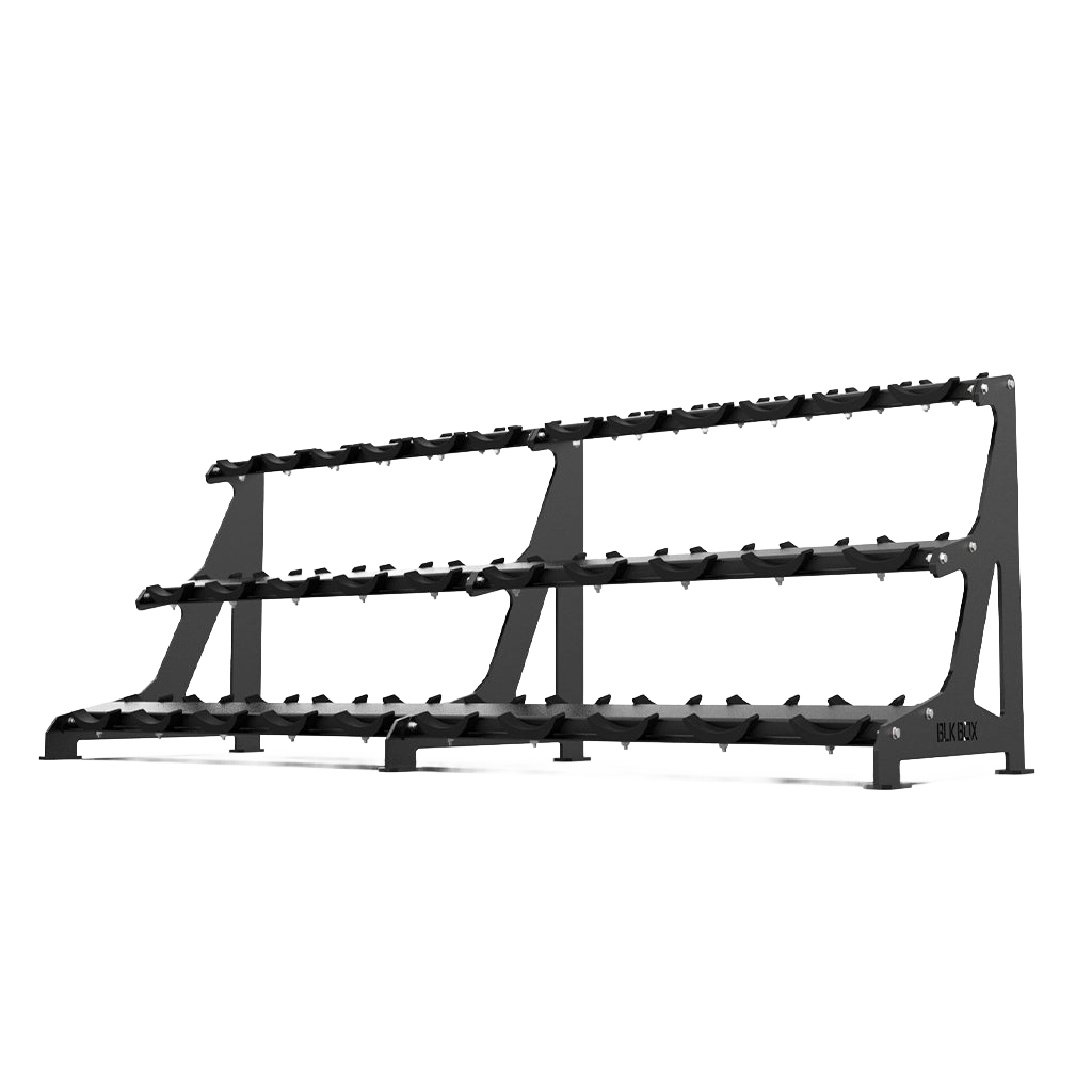 Designed for use with BLK BOX Urethane Dumbbells, it offers a range of colour options to suit any gym aesthetic. Sloped shelves ensure safe, ergonomic access when lifting or re-racking, while rubber-coated saddles and a central rail divider keep dumbbells securely in place. The result is a stable, safe, and efficient storage solution for gyms that demand performance.