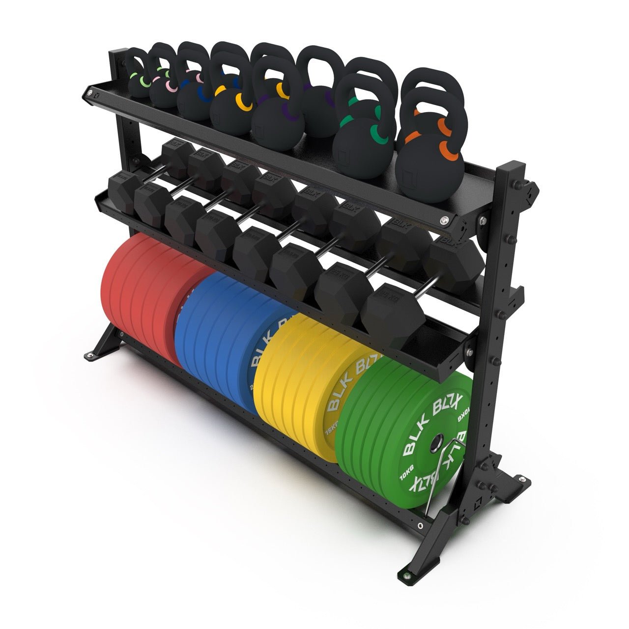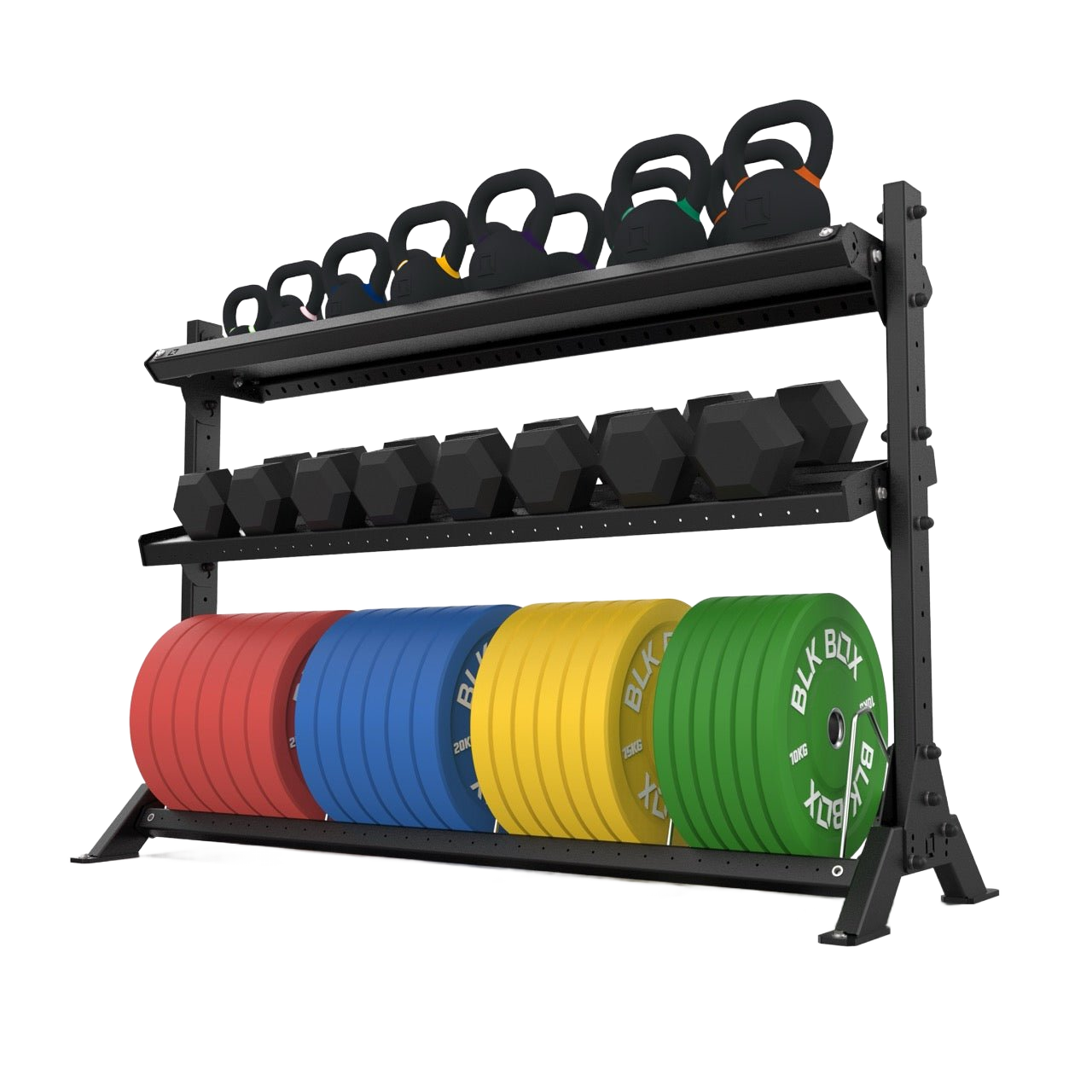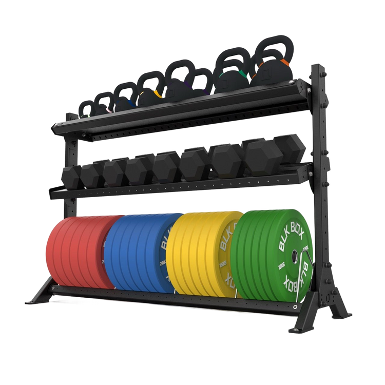 The BLK BOX Basecamp 3 Tier Storage System is a durable, modular solution for organising fitness equipment with efficiency and style. Designed to adapt as your facility grows, its expandable structure allows shelves to be added and configured to suit a wide range of gear, creating a clean and practical storage setup.