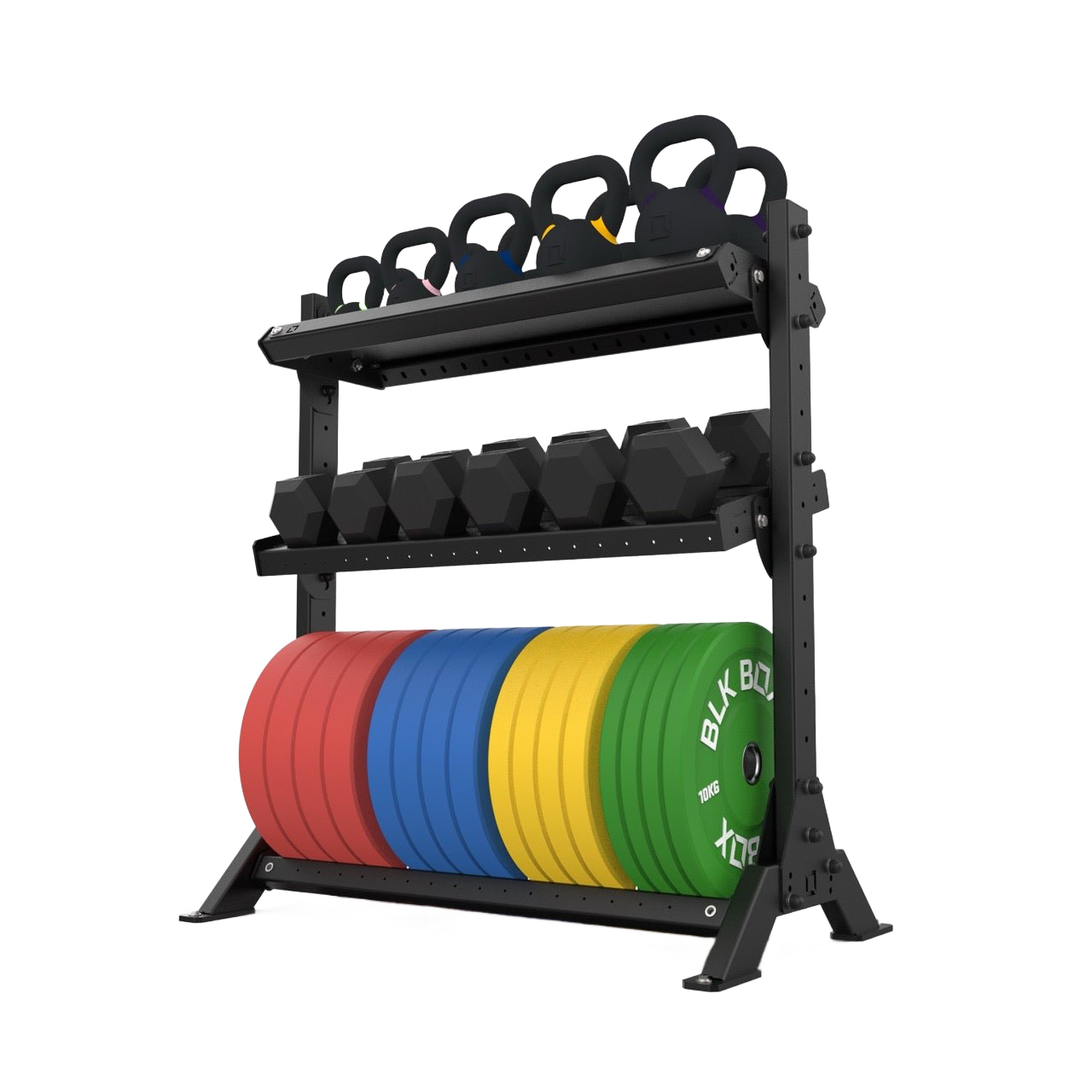 The BLK BOX Basecamp 3 Tier Storage System is a durable, modular solution for organising fitness equipment with efficiency and style. Designed to adapt as your facility grows, its expandable structure allows shelves to be added and configured to suit a wide range of gear, creating a clean and practical storage setup.