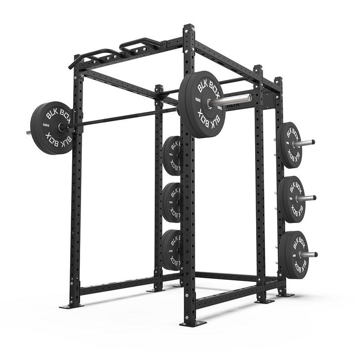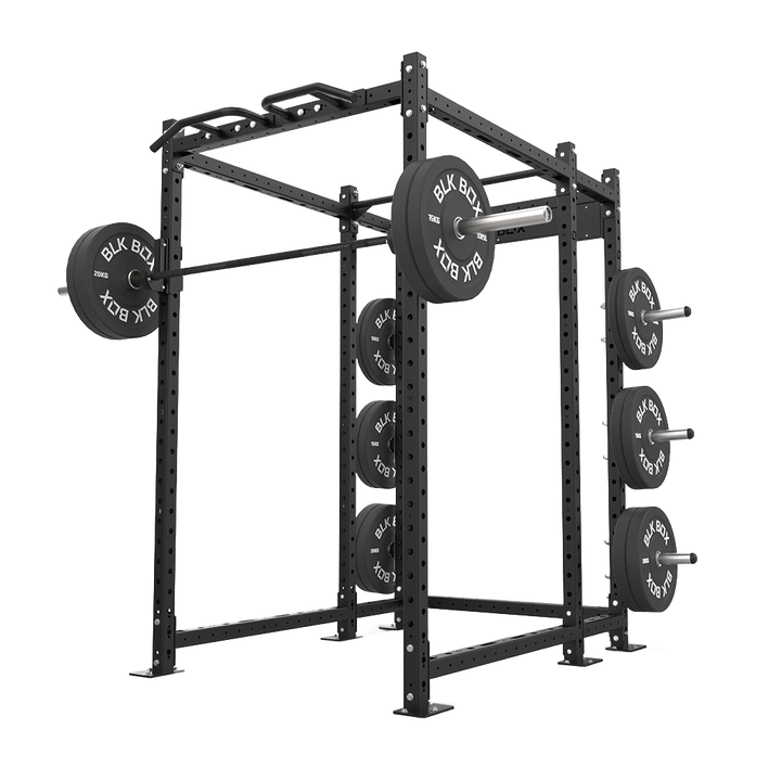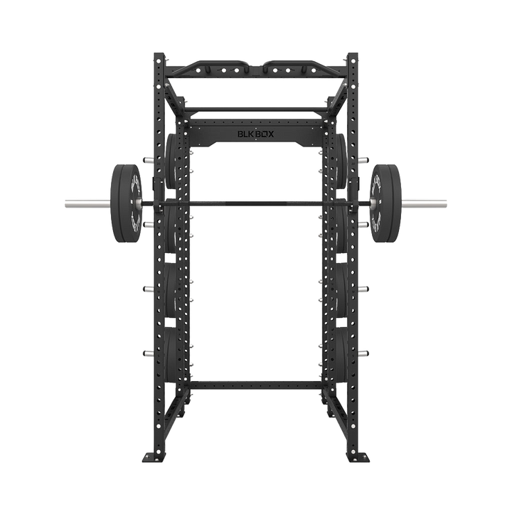 Built for lifters who want more out of a compact setup, the 1 Series Full Rack includes both pull-up and squat stations in one versatile unit. Measuring 2m x 0.9m, it provides ample space for complex movements while maintaining a small footprint. Made from robust 60x60x3mm steel, it features 75mm hole spacing and M10 hardware for seamless integration with BLK BOX attachments.