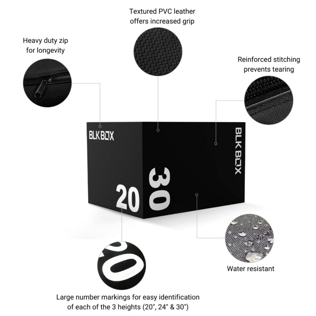 The box is filled with high-density compressed foam (18 kg) that absorbs impact, helping to protect your joints. Its smooth material prevents scraping on your shins, while the textured, anti-slip vinyl exterior keeps the box securely in place and adds extra grip for your shoes.