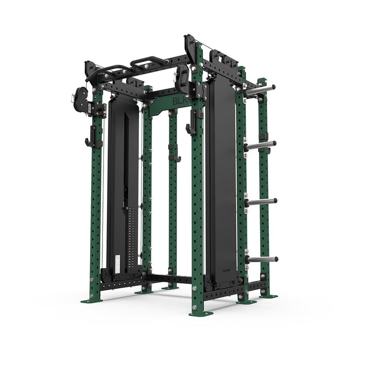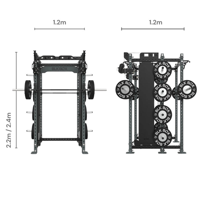 This combo pairs a Compact Rack with integrated cable functionality and a traditional Half Rack station. With twin squat bays, pull-up bars, and a 120kg cable stack, it’s a powerful hybrid solution for facilities needing variety, durability, and compact design in one rack.