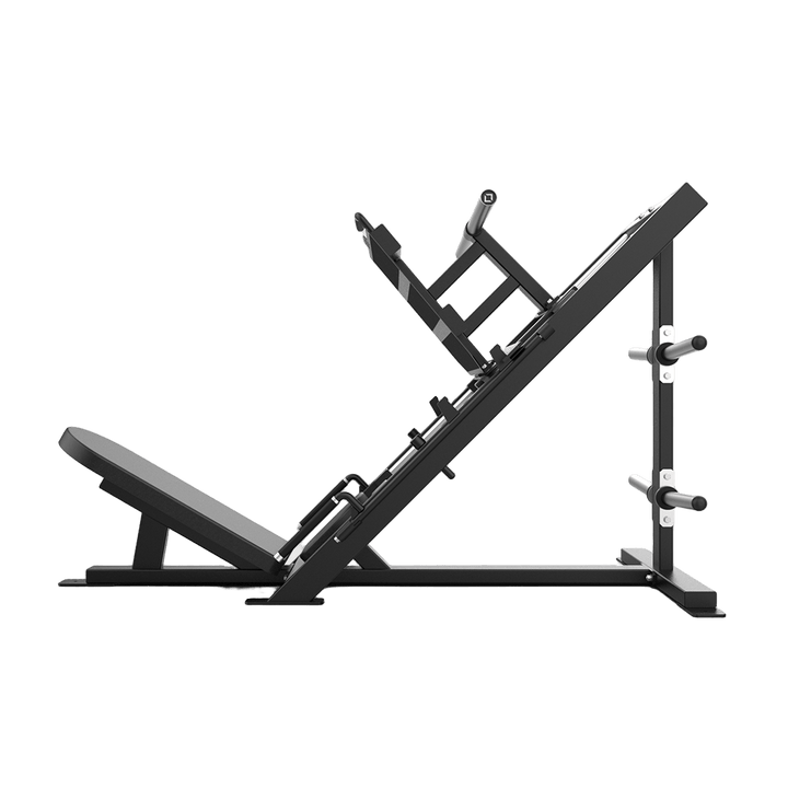The 45 Degree Leg Press is a heavy-duty machine designed to take lower body training to the next level. Made with linear self-aligning bearings, this heavy-duty leg press ensures smooth motion, durability, and secure positioning for maximum strength and power. The 45-degree angle ensures an efficient and comfortable range of motion, delivering around 70% of the true weight in resistance.