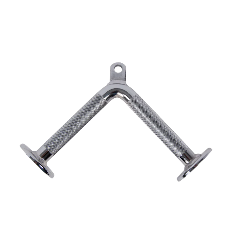 A solid steel cable attachment with a chrome finish, designed to train triceps, biceps, lats, and deltoids with strength and control.