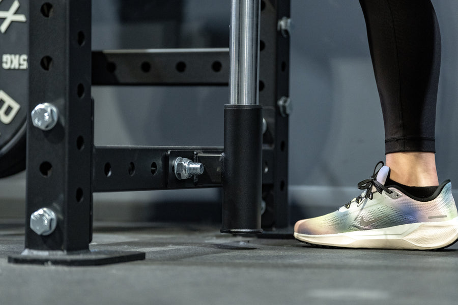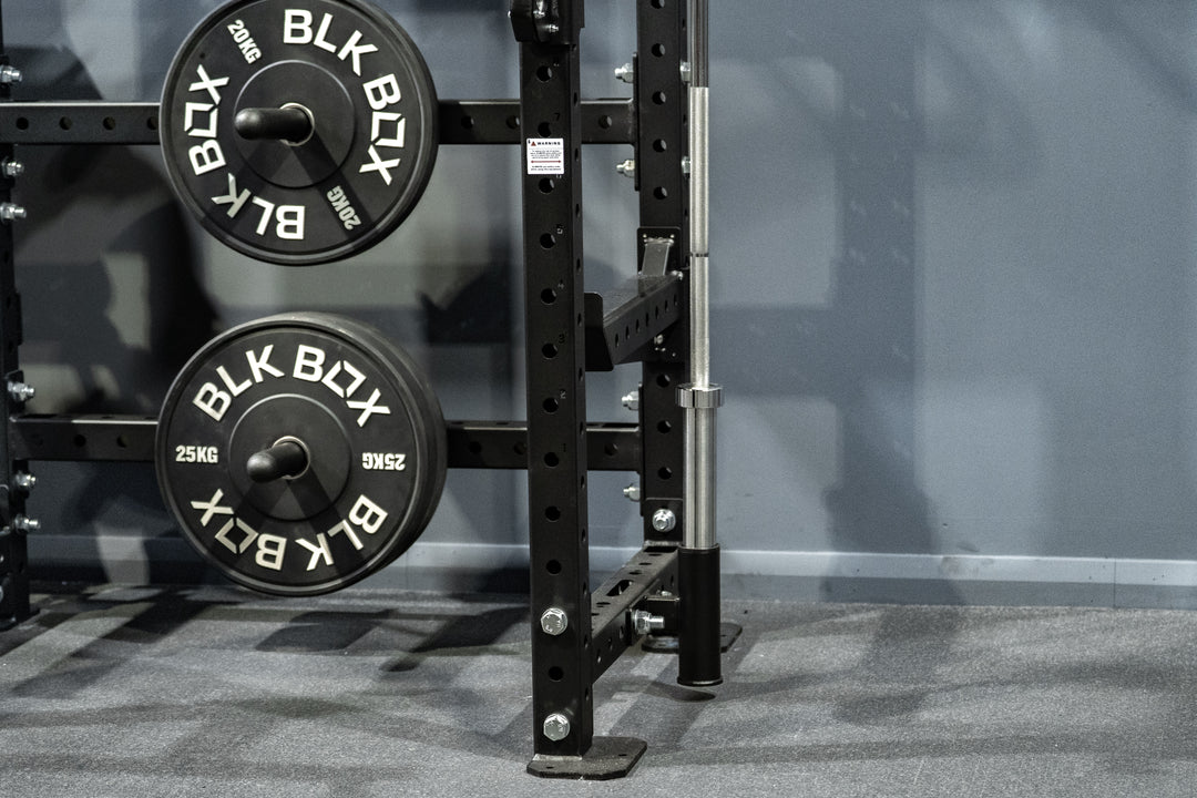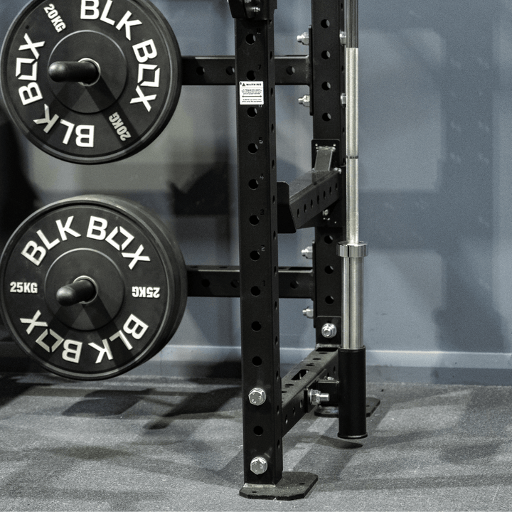 The BLK BOX Barbell Holder provides secure barbell storage and reduces gym floor space usage.