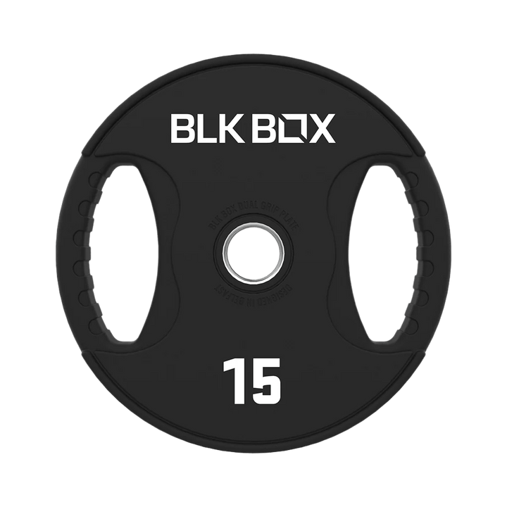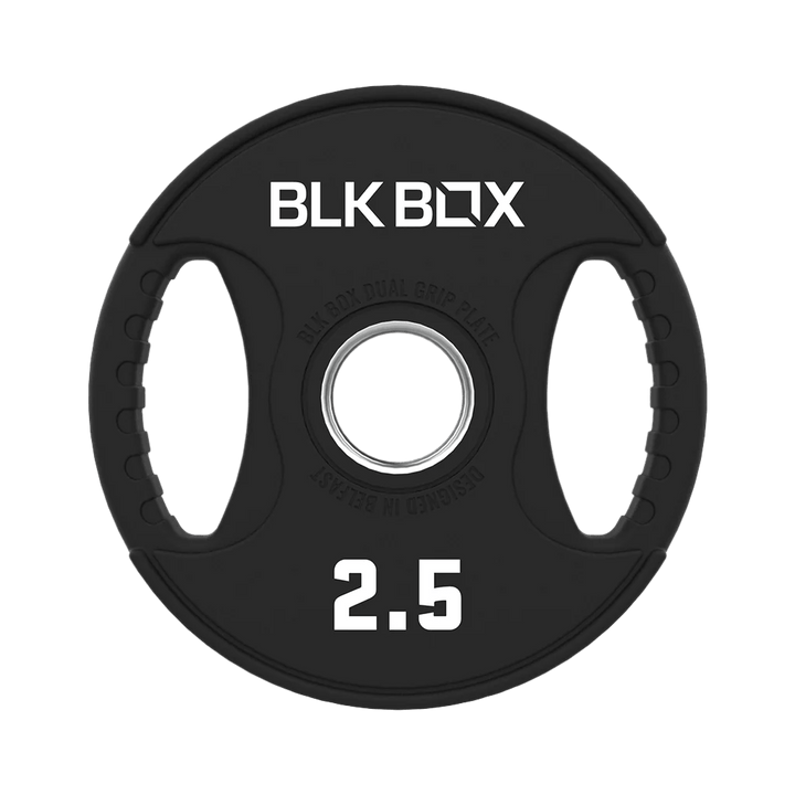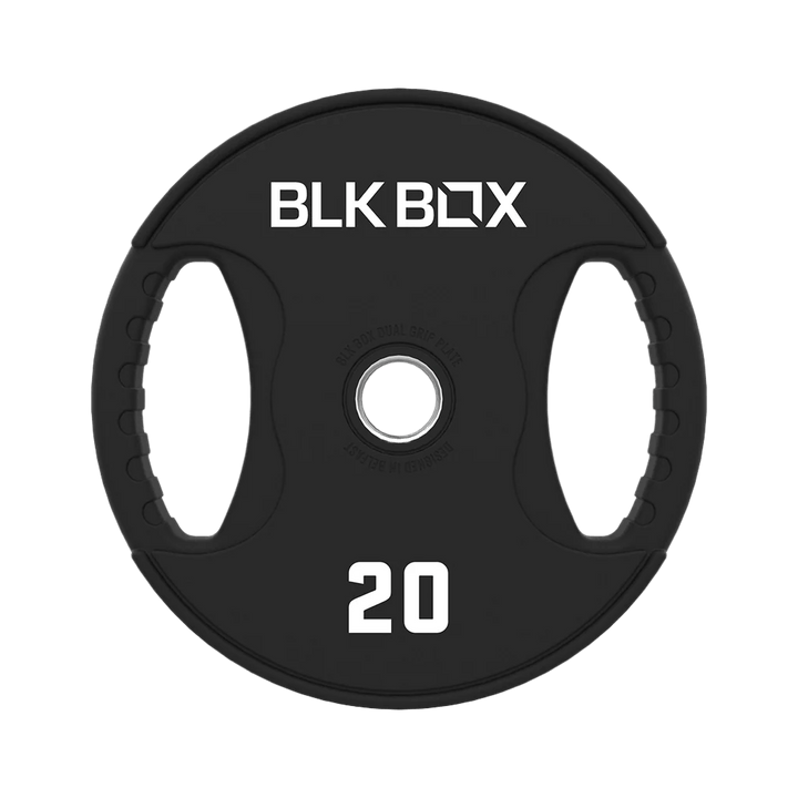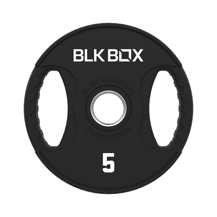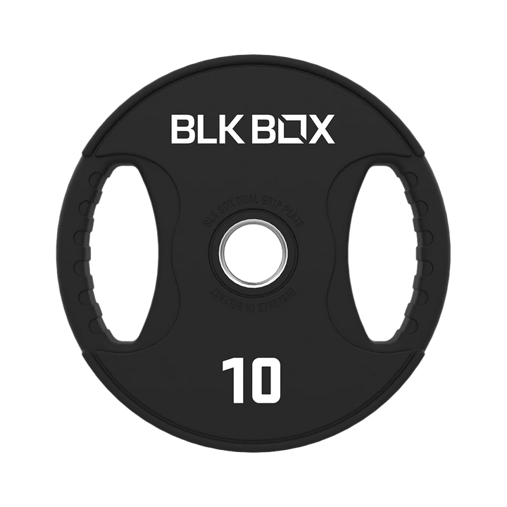 The BLK BOX Dual Grip Plates are designed to make loading, unloading, and handling safe and efficient. Featuring ergonomic dual handles, these plates offer a secure grip, making them easy to manoeuvre for a variety of exercises and functional training needs. Constructed from polyurethane-coated cast iron, they provide higher impact absorption compared to standard rubber coatings, ensuring durability and longevity in any training environment.