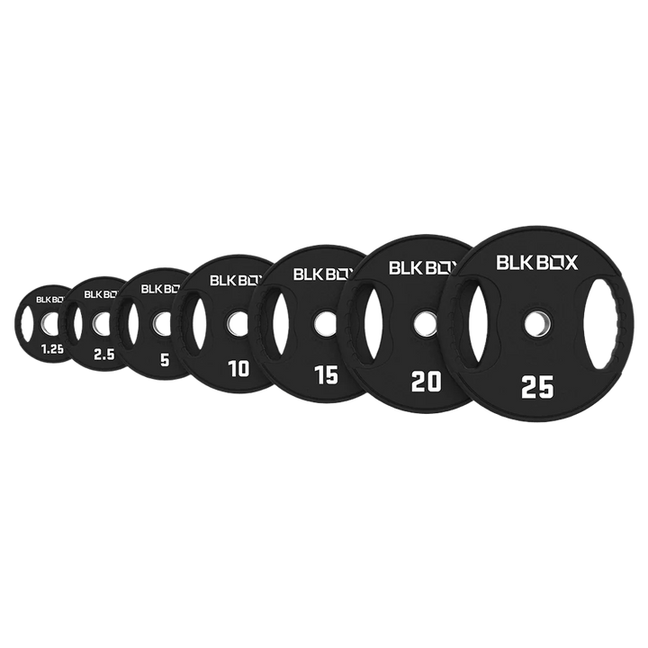 These plates are suitable for commercial use and can be utilised on plate-loaded machines, sleds, and for a range of strength exercises. They are compatible with all Olympic barbells, while varying sizes and thicknesses across different weights allow for flexible programming. Available in weights from 1.25 kg to 25 kg, the BLK BOX Dual Grip Plates are a versatile addition to any gym, supporting athletes and coaches in maximising training efficiency and performance.
