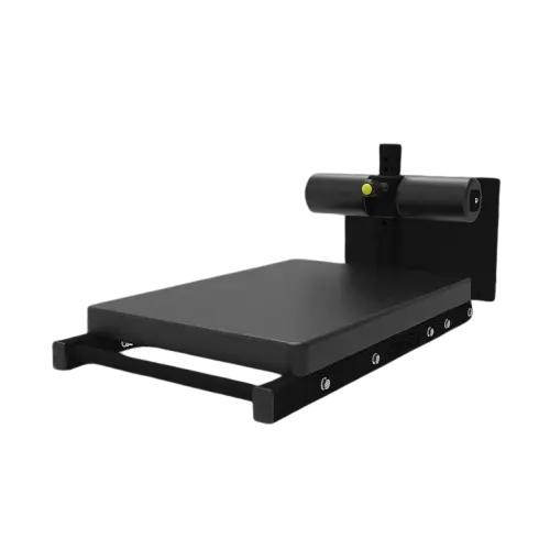 The BLK BOX Floor Glute-Ham is designed for limited spaces, featuring a larger-than-average footplate and adjustable ankle rollers with eight height options for a secure and versatile workout.