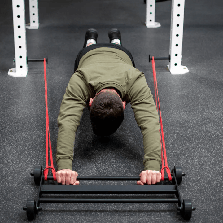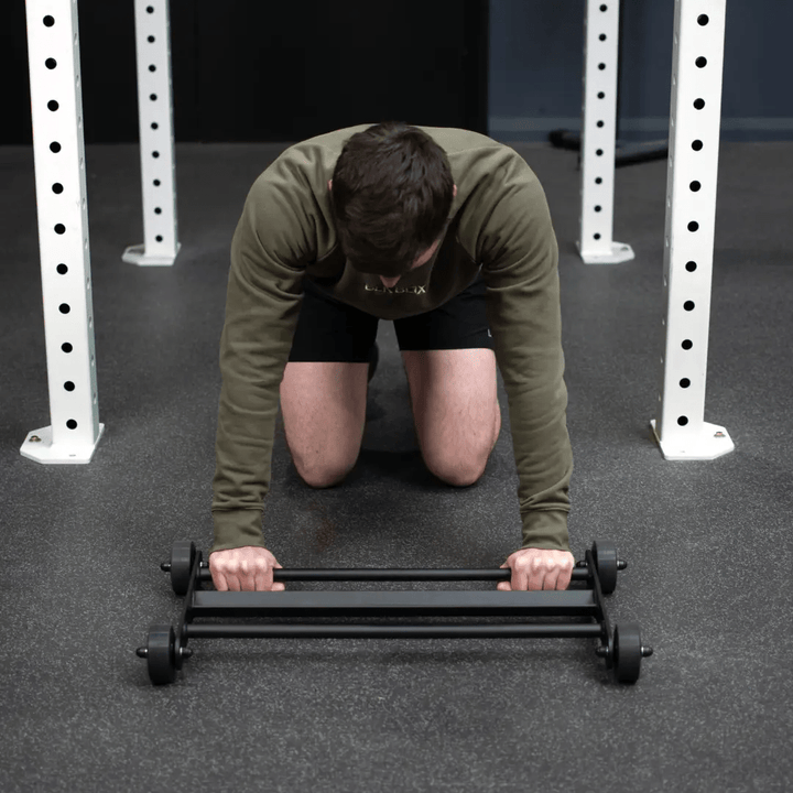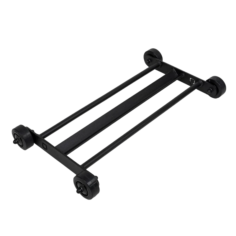 Heavy-duty rubber-rimmed wheels offer a smooth, stable glide across any gym floor and are rated to handle loads over 300kg, ensuring performance and reliability in both home and commercial settings.