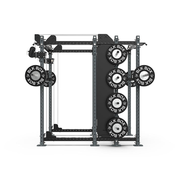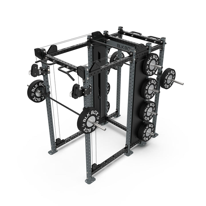 Offering a Full Rack paired with a Half Rack featuring integrated cable columns, this combo supports a wide range of training goals. Perfect for hybrid spaces, it provides dual pull-up and squat stations with the added benefit of cable resistance on one side.
