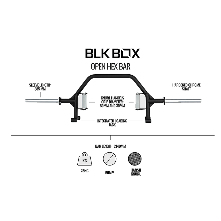 The BLK BOX Open Hex Bar redefines versatility and ease of use for strength training. Unlike traditional trap bars, its open design allows athletes to enter and exit the bar effortlessly, enabling a greater range of motion for exercises such as walking lunges, carries, and deadlifts.