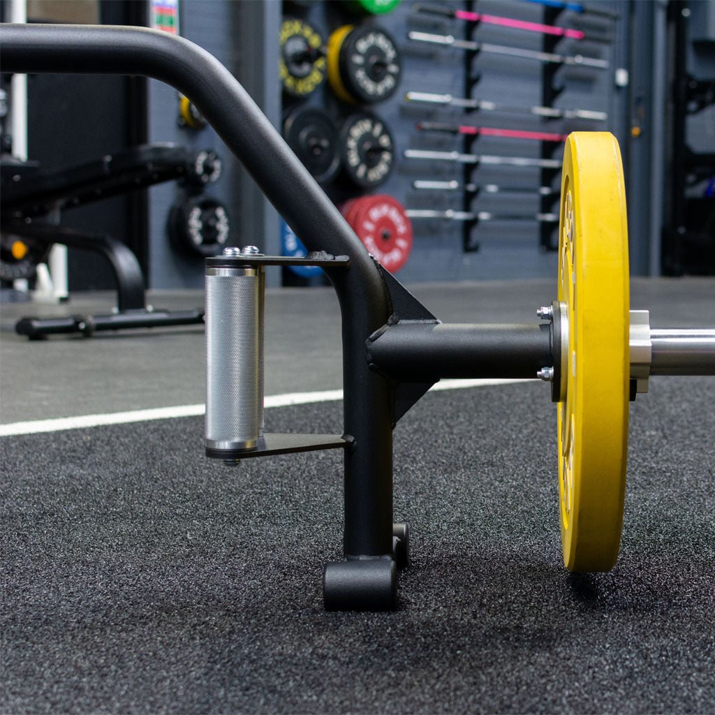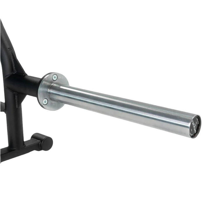 Built with a durable, textured matte black powder-coated frame and hardened chrome sleeves, this bar is engineered for heavy use while ensuring corrosion resistance. The integrated loading jack lifts the sleeves off the ground, making loading and unloading bumper plates simple and efficient.