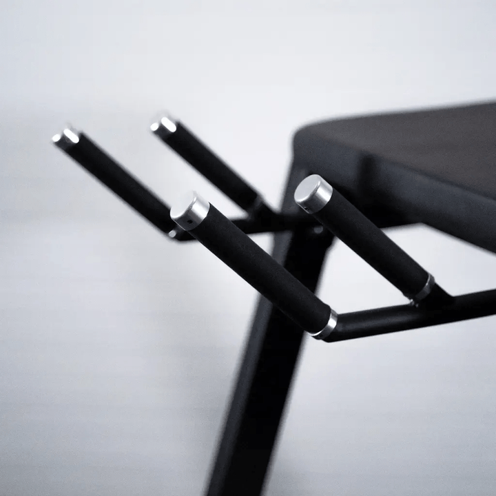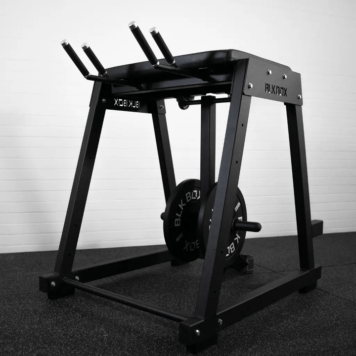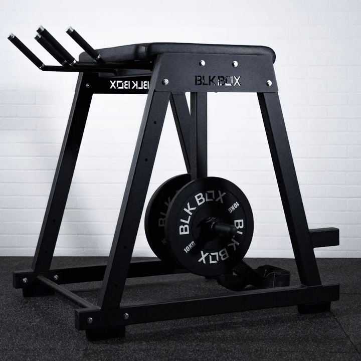 Built from laser cut mild steel, the Reverse Hyper features a high density foam padded top for comfort. A Spud Inc Belt attaches securely around the ankles, allowing controlled movement of the weight plates. Two sets of neoprene handles provide grip for different user heights, while rubber feet keep the unit stable and protect flooring.