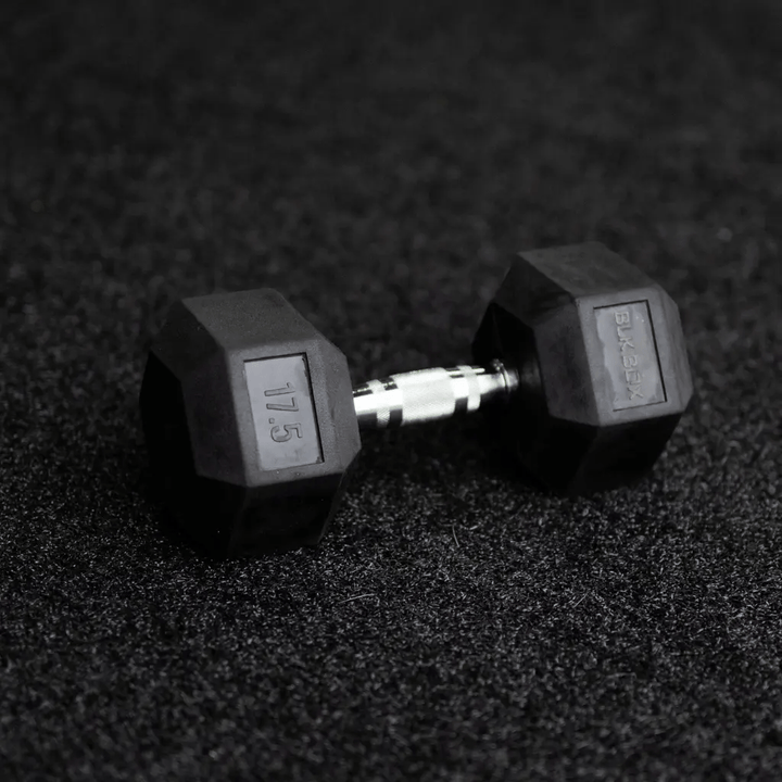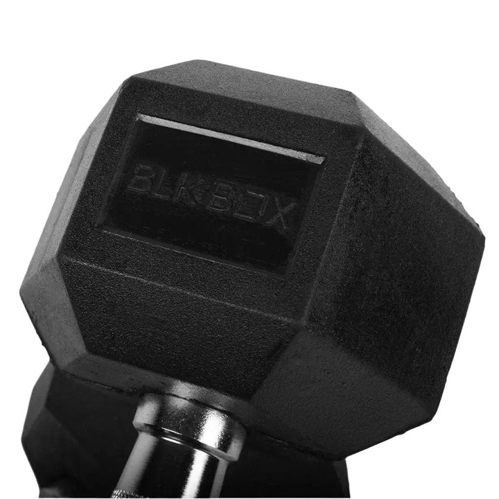 BLK BOX Rubber Hex Dumbbells are designed for strength, stability, and durability in any training space.