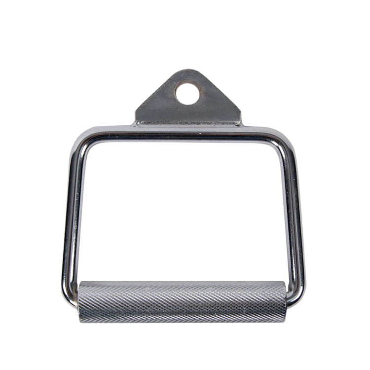 A solid steel, chrome-finished handle with knurling and rotation, designed for smooth, controlled single-arm curls, rows, and other cable exercises.