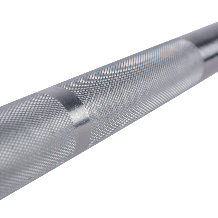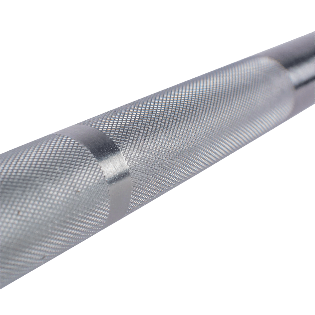 The sectional knurled handle on the BLK BOX Urethane Fixed Barbells not only enhances comfort and safety throughout your workout but also ensures a satisfactory grip.