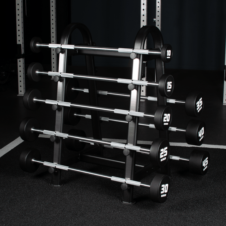 The BLK BOX Urethane Fixed Barbells are designed with comfort and design in mind while providing a piece of equipment that can perform a variety of workouts.