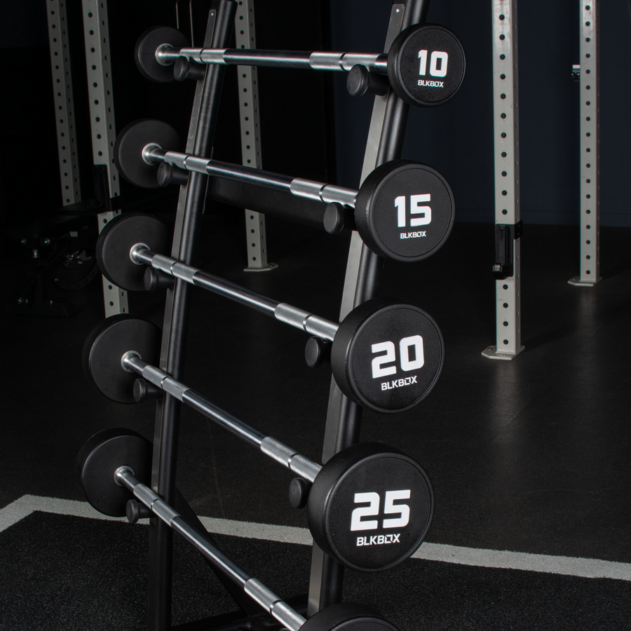The BLK BOX Urethane Fixed Barbells are designed with comfort and design in mind while providing a piece of equipment that can perform a variety of workouts.