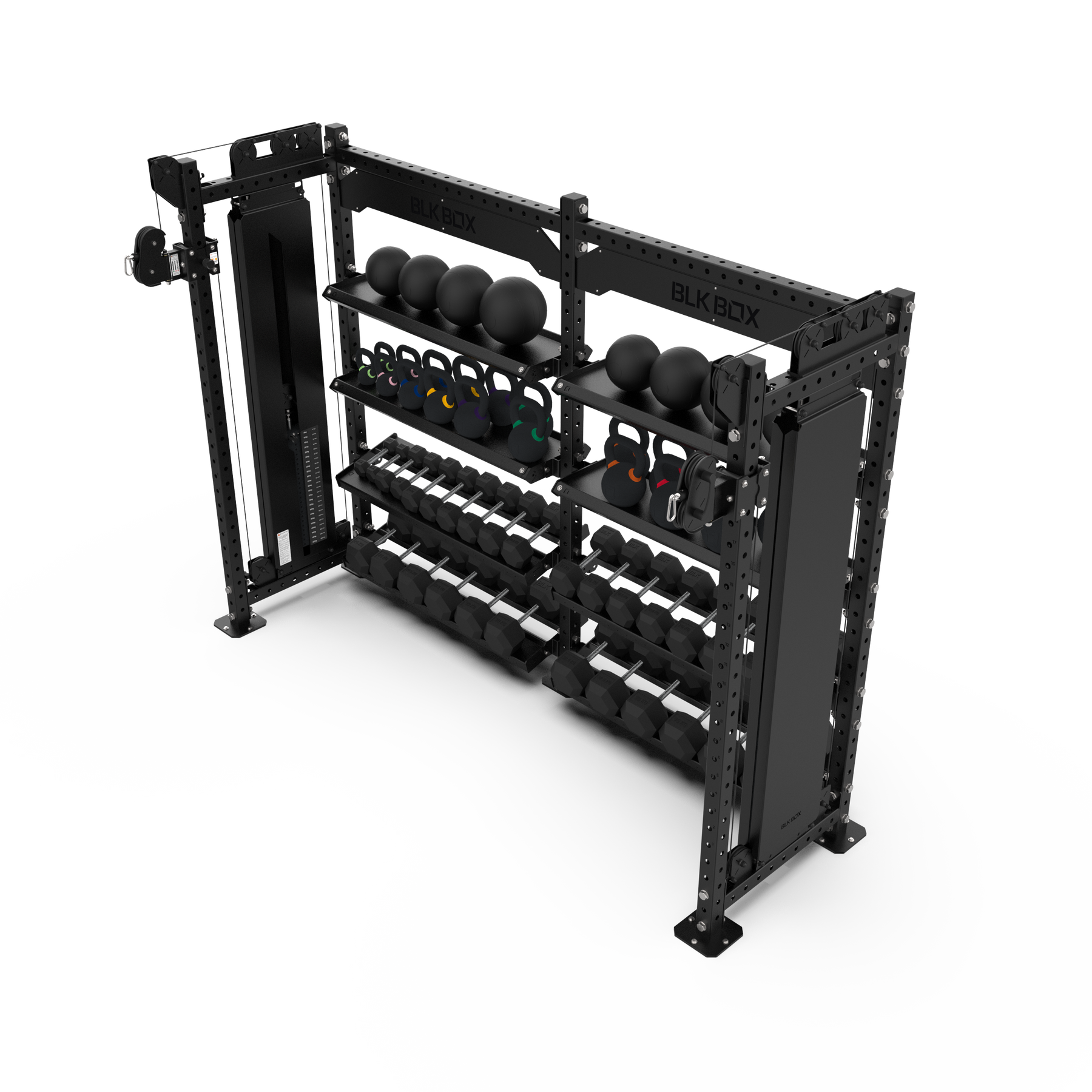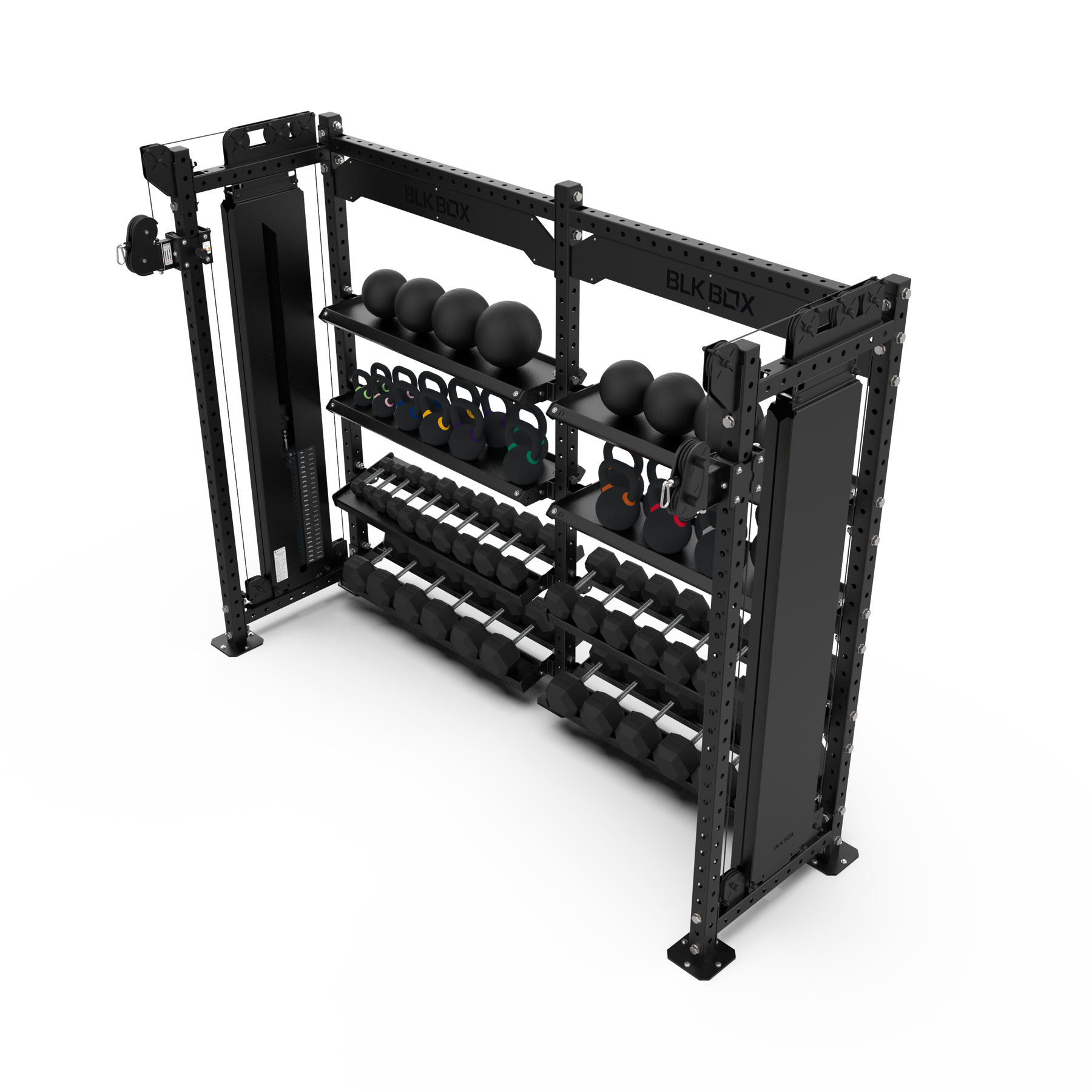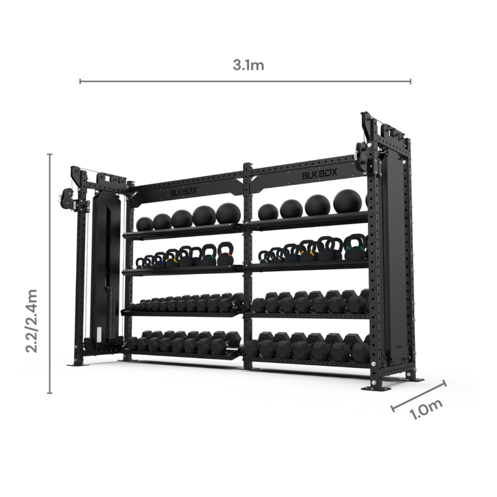 Featuring two independent cable columns, with one 120kg weight stack and a 1:1 pulley ratio each.