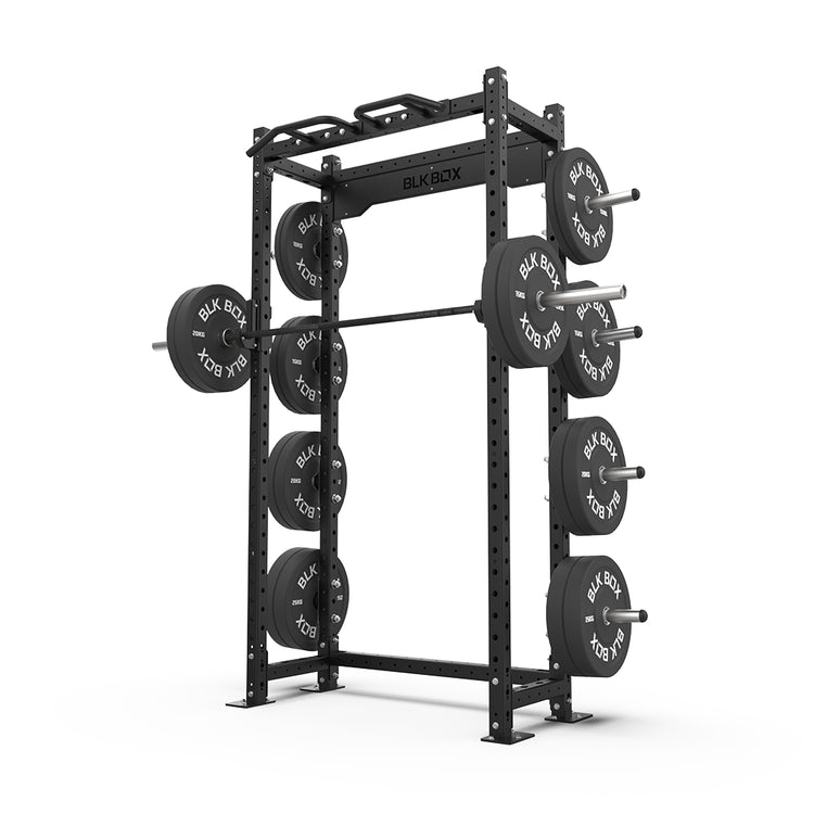 The 1 Series Half Rack is designed to deliver high functionality with a focus on space efficiency and performance. With a generous footprint of 2m x 1.8m, it accommodates dual squat and pull-up stations, making it suitable for busy gyms and training facilities. Constructed from durable 60x60x3mm steel with 75mm hole spacing and M10 hardware, it supports a variety of training styles and accessories.