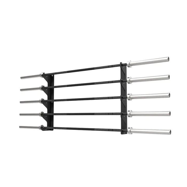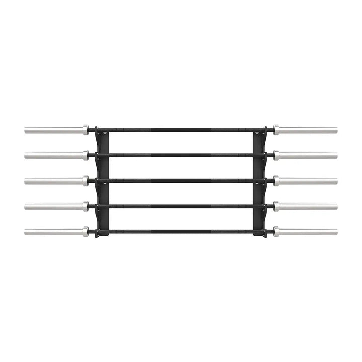 The BLK BOX Barbell Gun Rack is a space-efficient storage system designed to securely hold up to five barbells horizontally. Constructed from durable steel with protective plastic inserts, it prevents damage to your bars while keeping them neatly organised and off the floor.