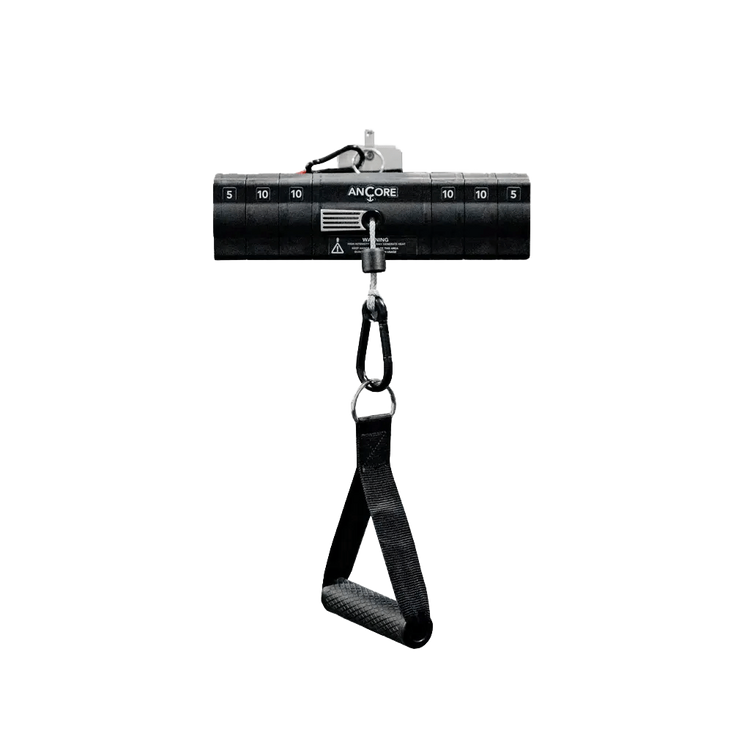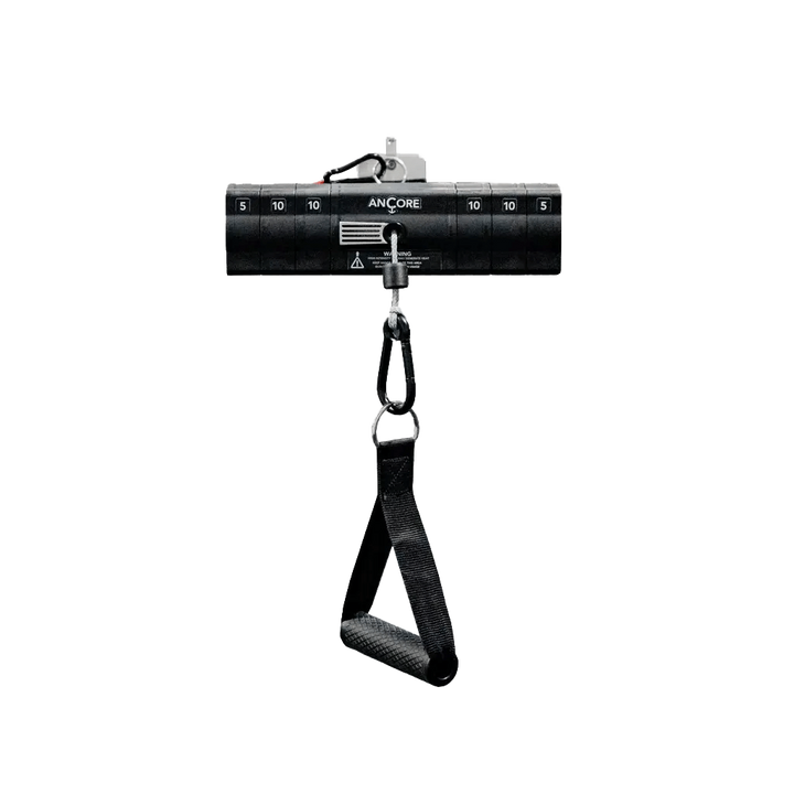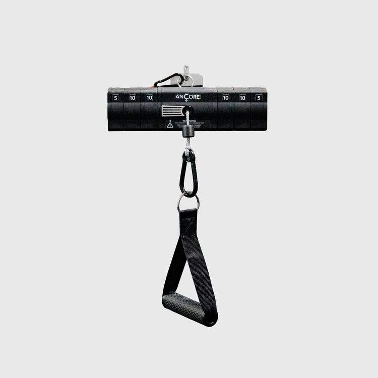 The ANCORE Trainer is an extremely functional and compact cable strength trainer. Whether it's a large commercial facility or home gym, the ANCORE Trainer has been designed to save space all while offering a fully functional training experience. With a total weight of 65lbs (29.48kg), resistance can be easily added or taken away simply by twisting on or off the plates (there are 6 plates included as standard).