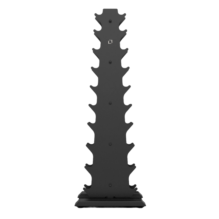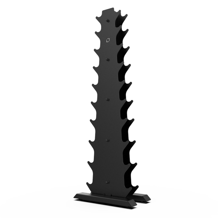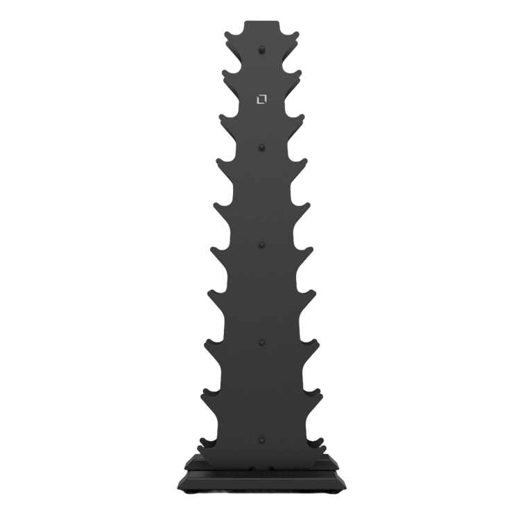 The BLK BOX Vertical Dumbbell Rack is a compact storage solution for both home gyms and commercial facilities. Designed to hold Hex or round dumbbells from 1–10kg, it keeps your training space organised and clutter-free. Grip cusps allow easy access, while adjustable rubber feet ensure stability and safety. Finished in a textured anti-scratch powder coat, the rack is built for long-lasting durability.